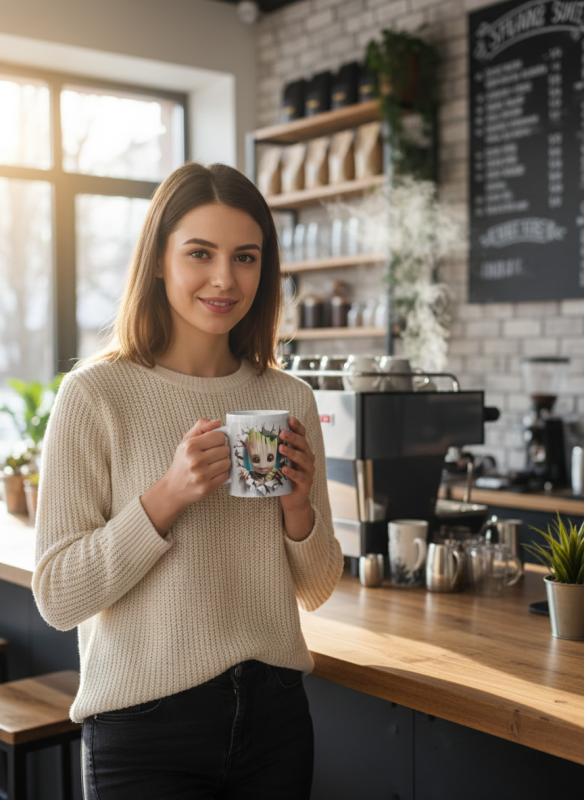 Ein galaktisches Highlight für Ihre Tassensammlung Bringen Sie Action und Niedlichkeit in Ihren Alltag! Diese exklusive Tasse zeigt Baby Groot aus den „Guardians of the Galaxy“ in einem spektakulären Grafik-Stil. Durch die geschickte Schattierung und die „aufgebrochene“ Optik der Tassenwand entsteht ein faszinierender 3D-Effekt, der alle Blicke auf sich zieht. Qualität, die überzeugt Gefertigt aus robuster Keramik, liegt die Tasse dank des ergonomisch geformten Griffs perfekt in der Hand. Ob für den heißen Kaffee am Morgen, den beruhigenden Tee am Abend oder als stylischer Stiftehalter auf dem Schreibtisch – Groot macht überall eine gute Figur. Produktdetails auf einen Blick: