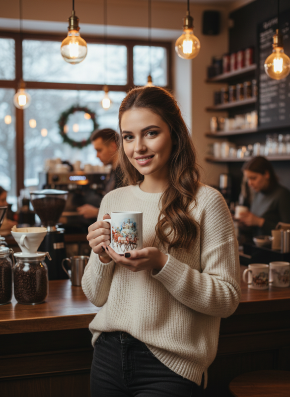 Der perfekte Begleiter für die gemütliche Weihnachtszeit! Tauchen Sie ein in die Magie von Weihnachten mit unserem exquisiten Keramikbecher "Santa's Schlittenfahrt". Das Motiv fängt den klassischen Charme der Feiertage ein: Ein fröhlicher Weihnachtsmann, der seinen Schlitten, gezogen von fleißigen Rentieren, über eine winterliche Landschaft lenkt, im Hintergrund eine malerische, verschneite Burg. Die sanften Farben und die detailreiche Gestaltung machen diesen Becher zu einem echten Blickfang. Vielseitig und Stimmungsvoll: Ob Sie Ihren Morgenkaffee, den festlichen Glühwein am Abend oder einen heißen Kakao am Kamin genießen möchten – dieser Becher hält Ihre Lieblingsgetränke warm und sorgt für eine Extraportion Weihnachtsstimmung. Die sanfte, unscharfe Darstellung eines brennenden Kamins und eines geschmückten Weihnachtsbaumes im Hintergrund des Produktbildes fängt die Atmosphäre ein, die dieser Becher in Ihr Zuhause bringt. Ein wundervolles Geschenk: Mit dem eleganten Schriftzug "Merry X-Mas" auf der Rückseite ist er auch das ideale Last-Minute-Geschenk oder eine liebevolle Ergänzung für jeden Adventskalender und Nikolausstiefel. Produktdetails: