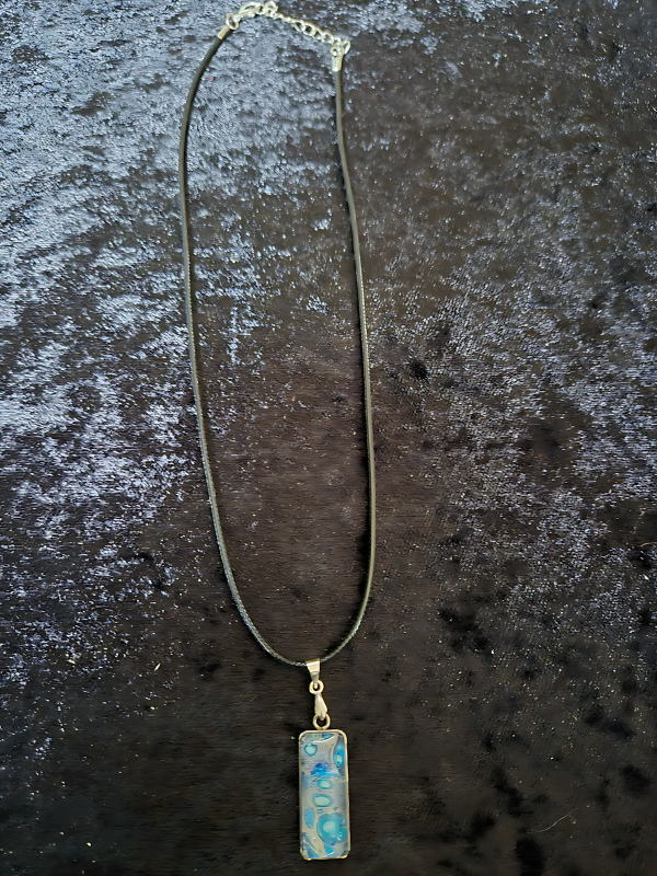 Handgefertigte Halskette mit Acryl Pouring-Anhänger in Blau-Tönen