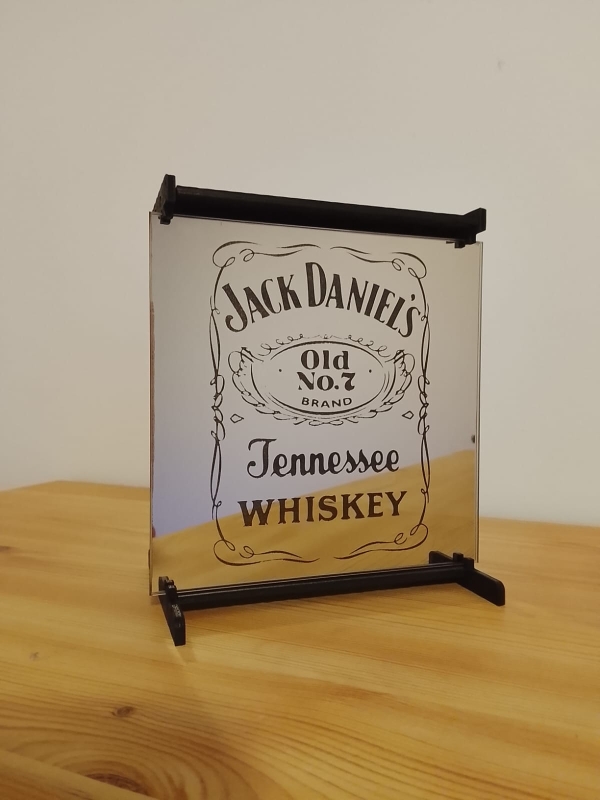 Lasergravierter Spiegel "Jack Daniel's" mit Aufsteller aus Pappelholz